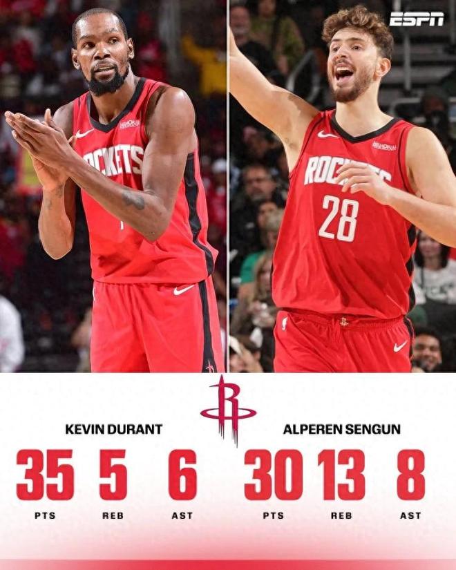 赛后申京和杜兰特抱在一起,杜兰特说没合作过申京这样的内线,申京说我也没和杜兰特这样的球员合作过。两人的内外连线,已经成为火箭目前最无解的进攻组合。然而,当比赛结束哨声响起,还有一人让我们眼前一亮的,他就是谢泼德,一个被无数人嘲讽的年轻人。谢泼德是2024年探花,新秀第一年被嘲笑水货,但现在兑现天赋了。今天谢泼德28分钟,就得到16分7篮板2助攻1抢断,正负值+19。